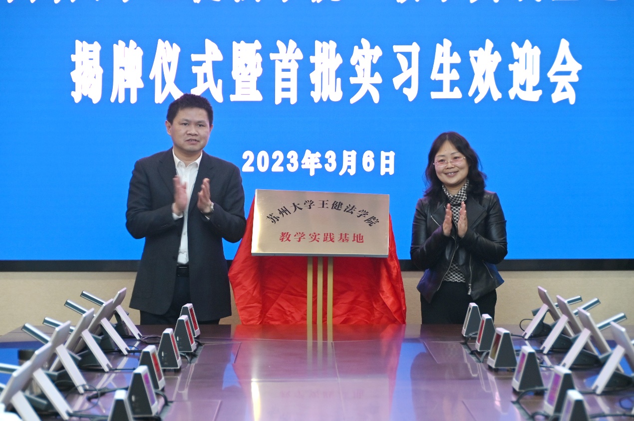 会上,孙宁华书记与秦川院长共同为苏州大学王健法学院“教学实践基地”揭牌。下一步,双方将就人才培养、科学研究、司法实践等多领域展开深入合作交流,推动双方合作落地见效、实现互利共赢共同发展。