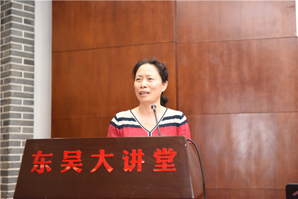 沈同仙教授作为教授代表上台发言,她对新生提出了四点要求:一是要尽快将中学学习生活模式切换到大学模式;二是要培养独立的思维模式;三是要珍惜同学之间、师生之间的友谊;四是不要辜负丰富多彩的大学生活。