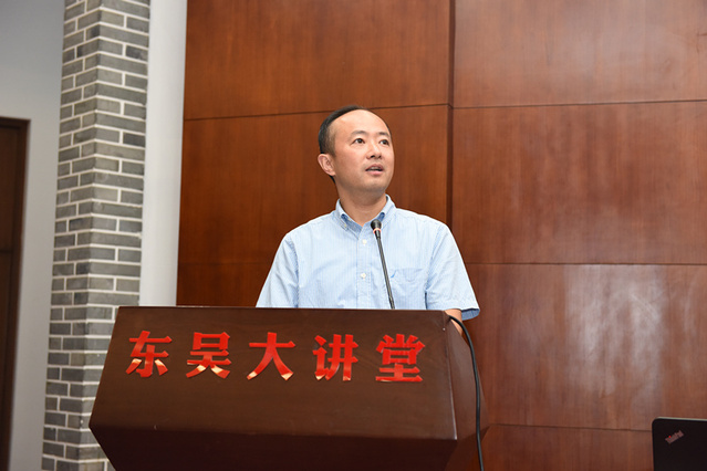 最后,院长方新军教授发表致辞,他代表学院向全体新生表示欢迎,随后以“降龙十八掌是如何炼成的”为题,与同学分享了“东吴派”的江湖人物。同时,他借用从古至今、中外结合的事例,谈论了练成降龙十八掌四个必要条件。他希望同学们闻鸡起舞,像郭靖一样,成为练成降龙十八掌的大侠。