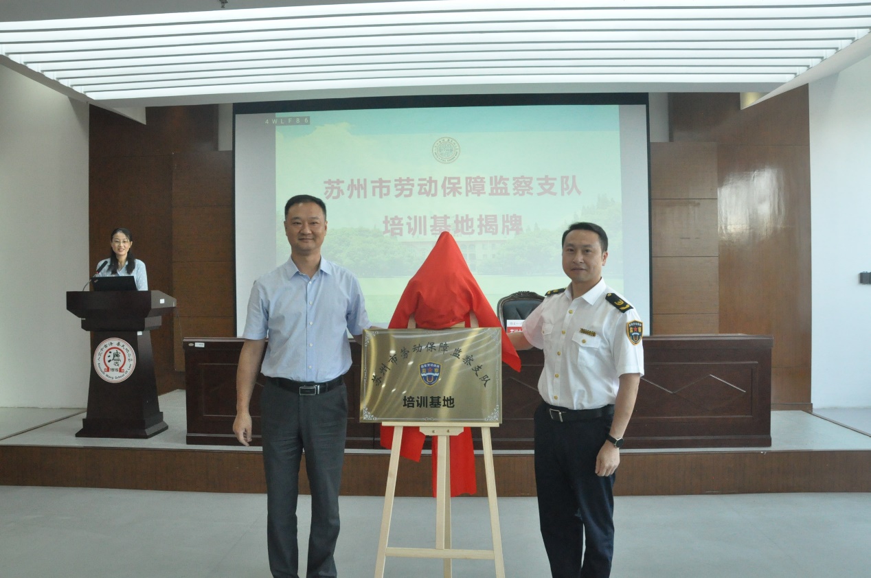 苏州市劳动保障监察支队支队长董迎峰、我院副院长沈晔共同为监察支队培训基地揭牌。