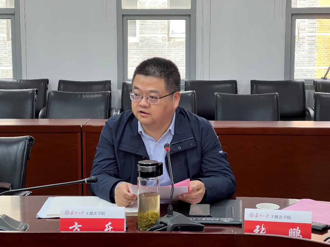 方新军院长在致辞中介绍了苏州大学王健法学院的历史沿革、师资力量与学科能力,强调参与地方立法是法学院重要的社会职能,希望能与实务部门加强合作,充分发挥我院的科研实力,为中央网信办的立法工作提供支持。