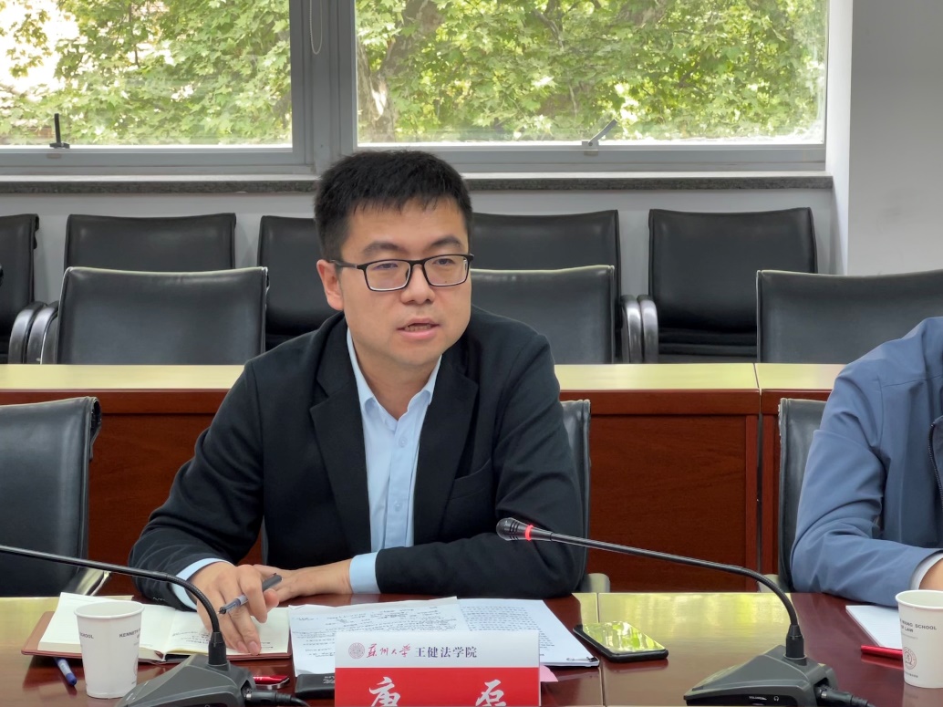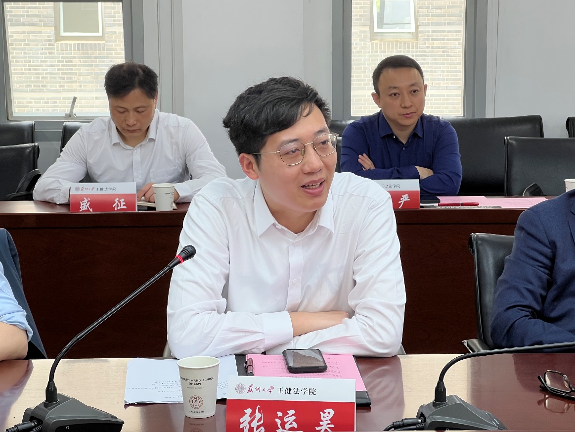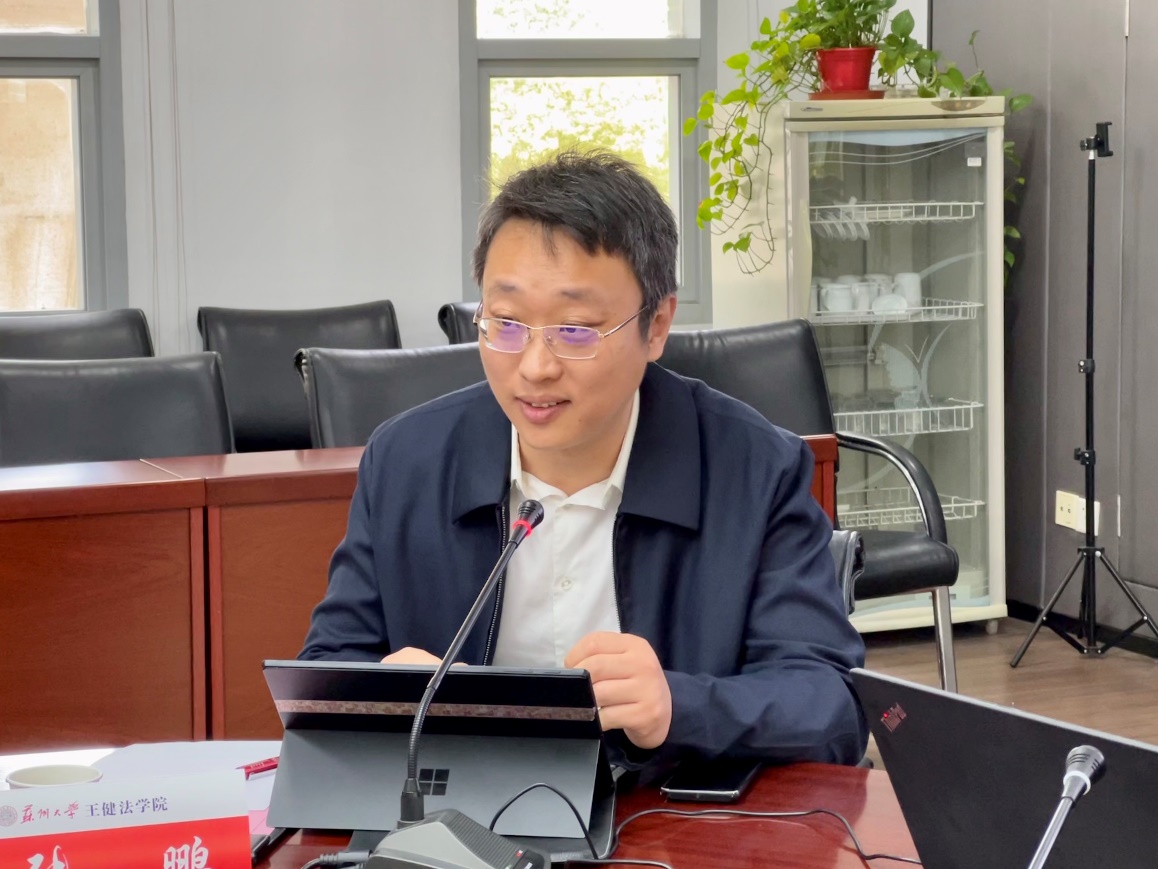 4月19日上午, “新技术新应用立法需求和网信领域基层立法联系点建设”主题研讨会在王健法学院大会议室举行。中央网信办网络法治局副局长唐磊、法规处一级主任科员何思东、干部王雅蓉,江苏省委网信办政策法规处一级主任科员孟超,苏州市委网信办副主任陆怡,南京师范大学法学院院长、江苏省地方立法研究基地(南京师范大学)主任方乐,江苏省地方立法研究基地(南京师范大学)副主任张鹏,江苏省地方立法研究基地(东南大学)秘书张运昊,我院院长、江苏省地方立法研究基地(苏州大学)主任方新军, 我院教授、博士生导师赵毅等专家学者参加研讨会,会议由苏州市委网信办副主任陆怡主持。