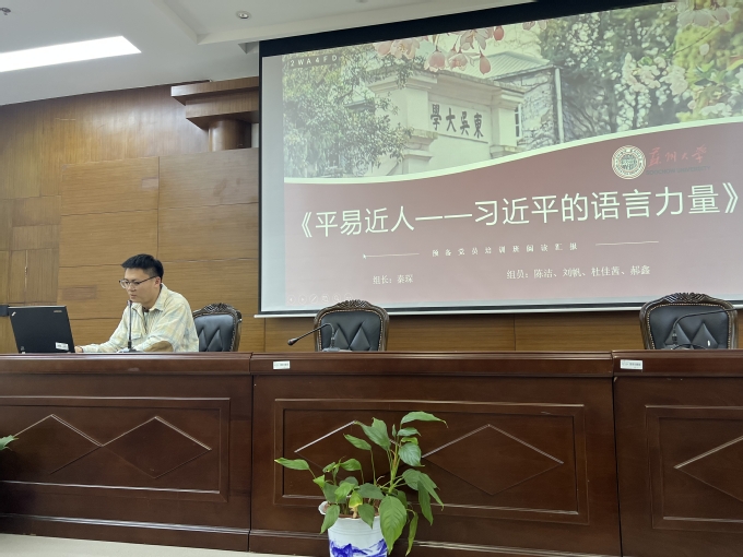 活动伊始,入党积极分子、发展对象、预备党员共十个小组分别进行了汇报分享。学员们从多个角度、多种形式、多重层面对党的历史、理论知识、英雄人物等进行了全面、深入、独到的分享。其中,部分学员在组织理论学习的同时注重知行合一,自发前往苏州革命博物馆体会革命先辈的无私无畏,接受革命精神的熏陶。有的学员学习后深有所感,以整齐划一、声情并茂的诗朗诵来表达对革命英烈的无限敬仰以及建设祖国的坚定意志。有的学员则以一本书、一个人、一部电影为切口,深入了解时代背景下中国共产党和共产党员筚路蓝缕、前赴后继、永不放弃的创业史,体悟深刻。