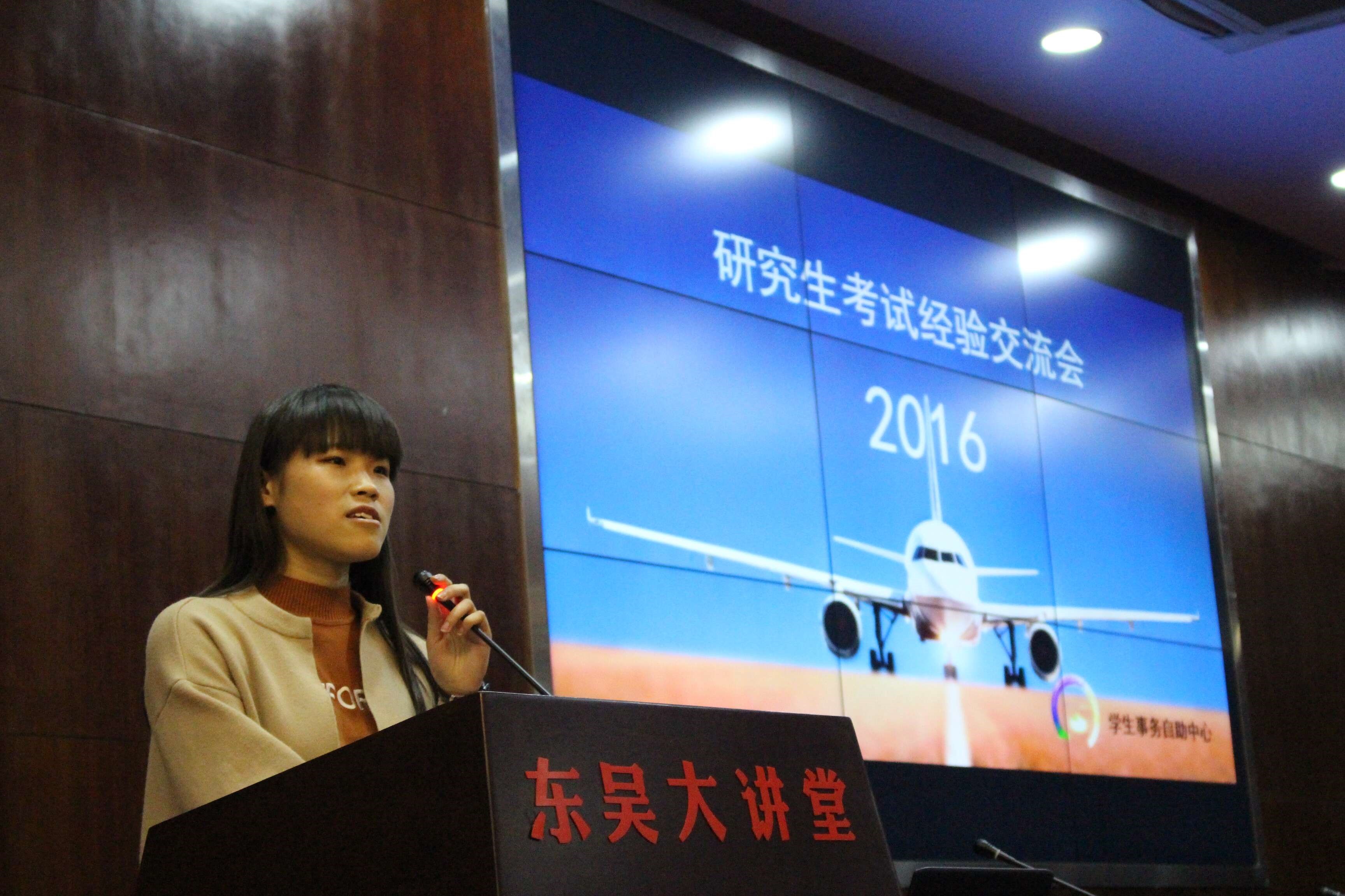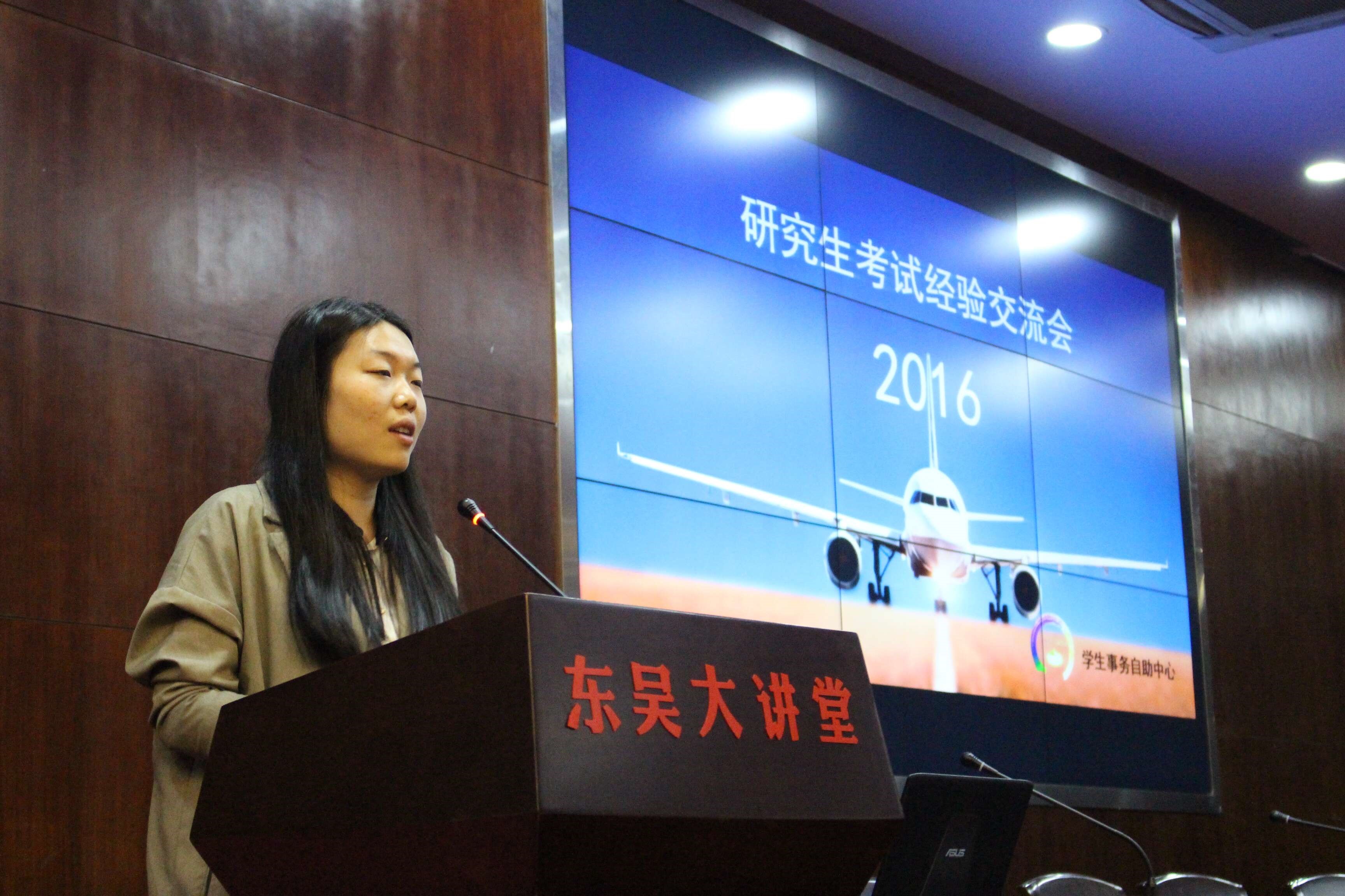 四月清和雨乍晴,今年的考研交流会便在这天朗气清的4月12日的19:00于东吴大讲堂举行。主持人王腾飞洋上场后首先祝贺学长学姐们取得了优异的成绩,随后感谢大三的学长学姐百忙之中可以参加本次考研交流会,还有想取经的大二大一同学,相信大家都能受益匪浅!