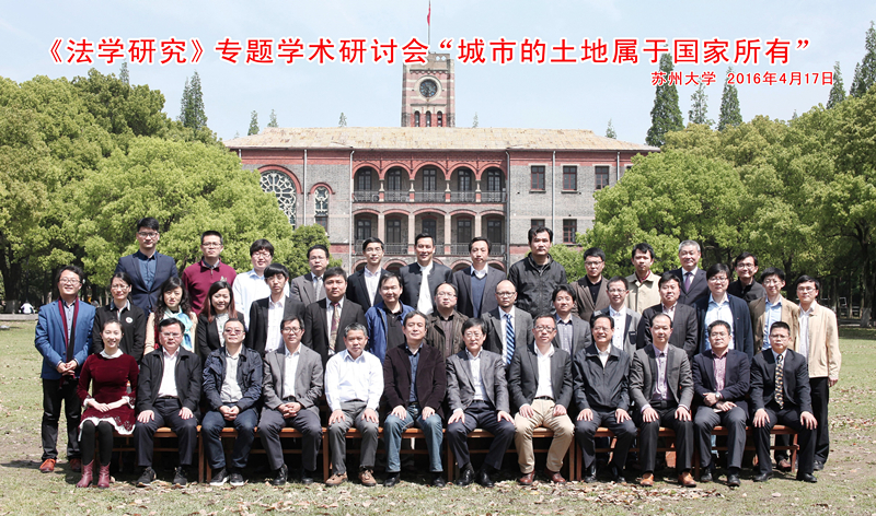 2015年4月17日,由《法学研究》编辑部、中国宪法学研究会、苏州大学王健法学院联合主办,苏州大学公法研究中心承办的“城市的土地属于国家所有”专题学术研讨会在苏州大学王健法学院顺利举行。来自中国社会科学院法学研究所、中国人民大学法学院、北京大学法学院、中国政法大学民商经济法学院、上海交通大学凯原法学院、华东政法大学、吉林大学法学院、山东大学法学院、浙江大学光华法学院、南京大学法学院、北京航空航天大学法学院、郑州大学法学院、江南大学法学院、南京晓庄学院、湖北大学政法与公共管理学院、杭州师范大学法学院、福州大学法学院、中央财经大学经济学院、华中科技大学中国乡村治理研究中心、西安工程大学法律系、苏州大学王健法学院以及中央党校报刊社、南方周末、澳门特区政府土地工务运输司等科研院所、报纸媒体以及实务部门的50余名专家学者出席了本次研讨会。