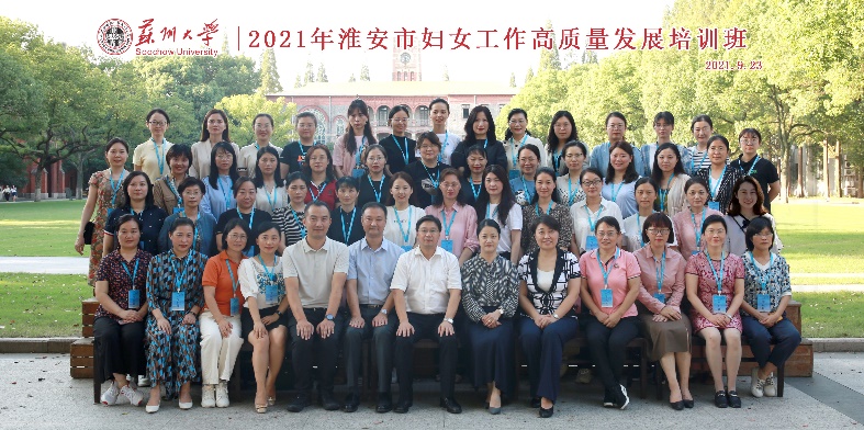 2021年9月23日下午,由淮安市委组织部和淮安市妇联联合举办的“2121年淮安市妇女工作高质量发展培训班”在美丽的苏州大学法学院顺利开班。淮安市委企业和社会组织工委副书记吴小松,淮安市妇联党组书记、主席王娟,淮安市妇联党组成员、副主席丁伟出席开班仪式。