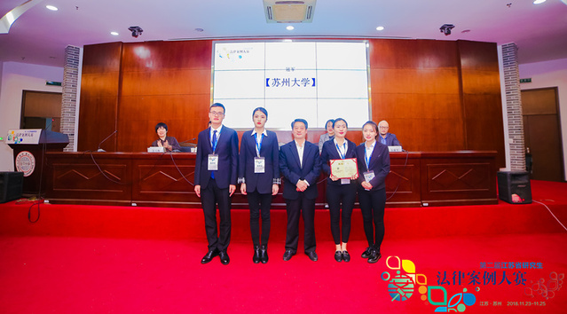 2018年11月24-25日,第二届江苏省研究生法律案例大赛在苏州大学王健法学院圆满落幕。本次大赛由江苏省学位办主办、苏州大学王健法学院承办、良翰律师事务所全程支持,大赛吸引了15家拥有法律/法学硕士授予权的培养单位组队参赛。25日上午,江苏省高级人民法院副院长褚红军、苏州大学副校长蒋星红、江苏省教育厅研究生教育处(省学位办)干部张锦文、苏州大学研究生院党委研究生工作部部长吴雪梅出席总结及颁奖大会。苏州大学王健法学院院长方新军担任主持。
