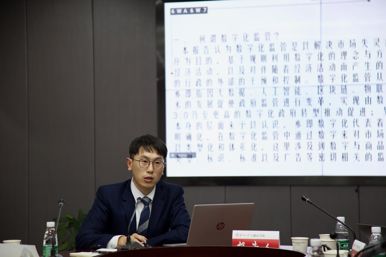 第三阶段的汇报由沈承诚教授主持。张牧遥副教授围绕《适应新时代食用监管需要的权力配置研究》、李清宇副教授围绕《数据资源使用监管权力配置研究》、刘芳博士围绕《市场监管中的数字化监管及其权力配置》的研究思路及主要研究内容进行了汇报。石肖雪副教授、欧阳君君副教授、杨曦博士等对上述汇报进行与谈和点评。