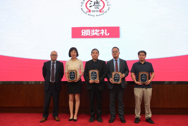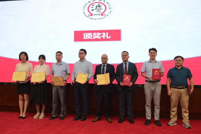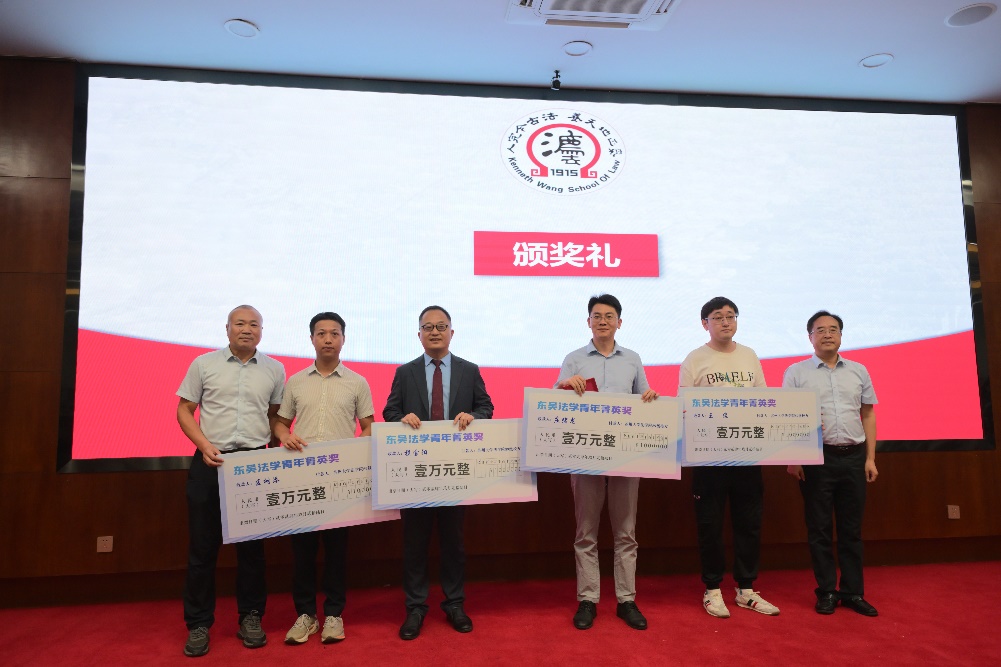 随后,89级校友代表杨钧辉、杨建功共同为“东吴法学青年菁英奖” 2024年度获奖教师颁奖,他们分别是程雪阳、庄绪龙、王俊、区树添。
