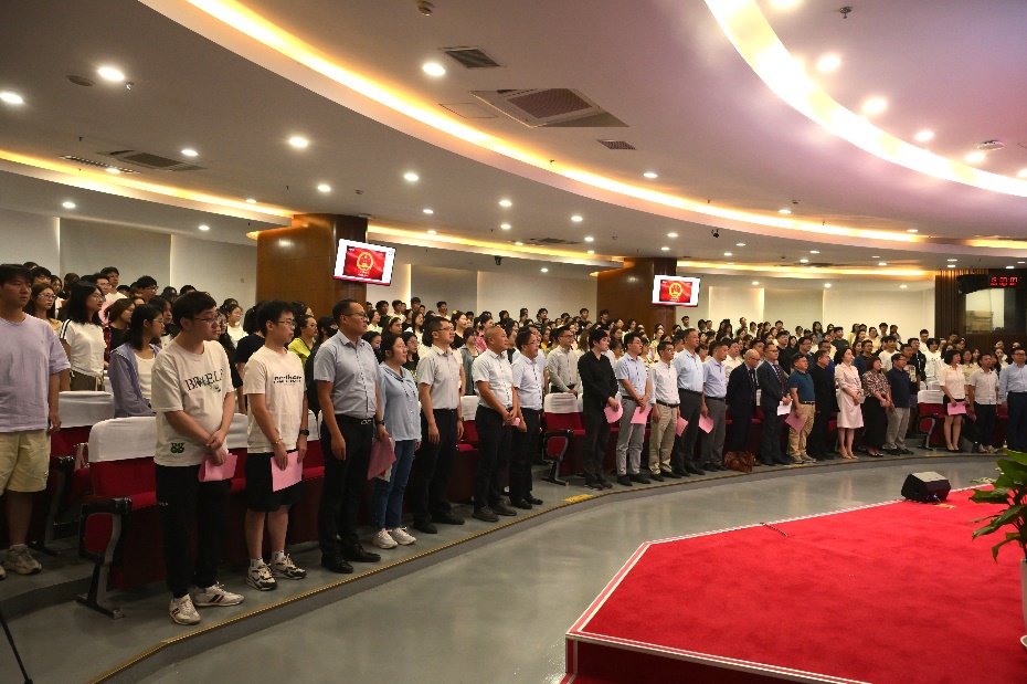 在介绍与会领导与嘉宾后,开学典礼在庄严的国歌声中拉开序幕。