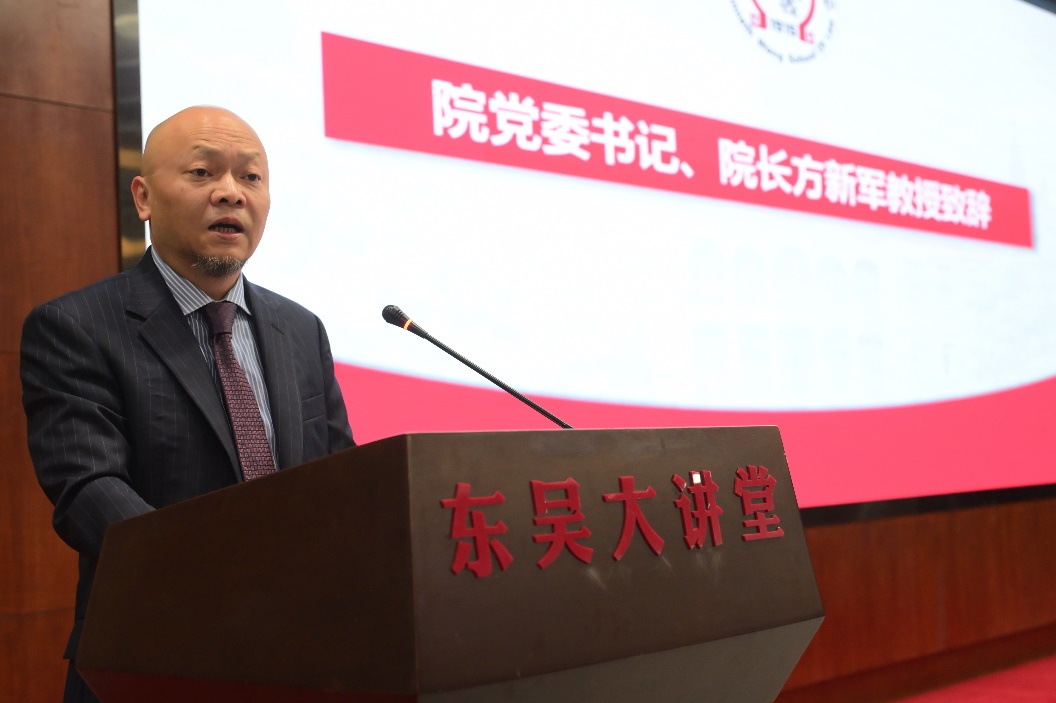 方新军院长以《养天地正气 法古今完人》为题为开学典礼致辞。方院长代表法学院全体师生对2024级新生的到来表示热烈欢迎。他从苏州大学校训的中英文拟定入手,通过对比中西方古代与现代的教育理念,鼓励全体新生努力成长为一名“完人”。所谓“完人”并非完美无缺,而是在学习过程中,实现了解自我、探索自己的远大目标,毕业时成为一个更加成熟的人。在数字化、全球化蓬勃发展的人工智能时代背景下,所谓“完人”,就是要坚持博雅式学习,始终站在知识发展前沿,养成良好的读书习惯,在法学知识以外系统阅读哲学、社会学、历史学、政治学等内容,博采众长,努力成长为复合型法学人才,为中国式现代化提供强大法律支撑。