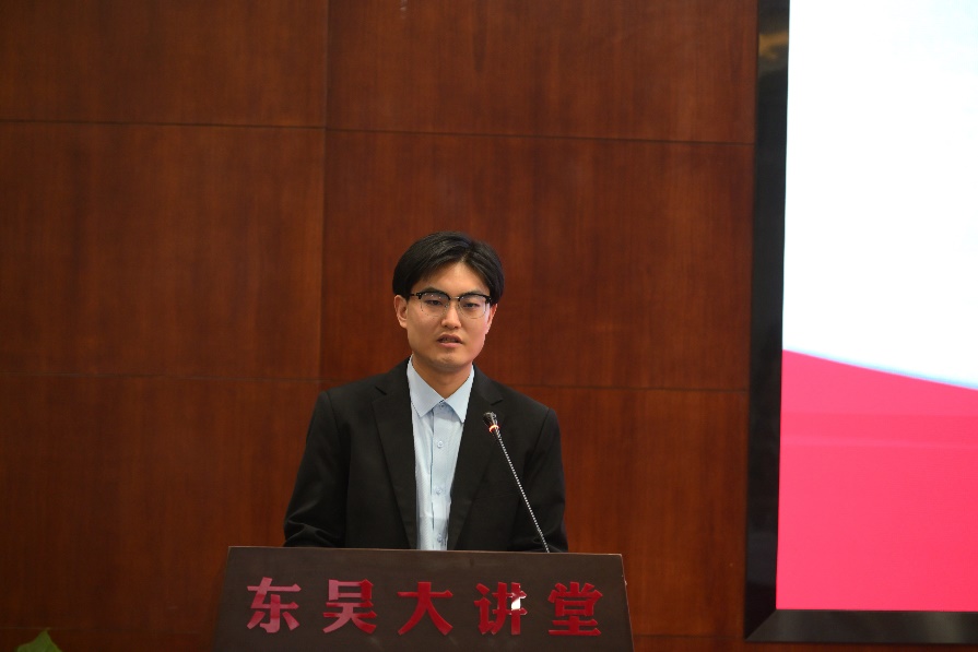 2024级博士新生代表刘汗青发言。他回顾自己从本科农学专业每天“除草、掰玉米”,到转学法律,每天挑灯夜读法条的心路历程。从自身经验出发,他提出两点感悟与全体新生共勉:一,砥砺前行,追寻心中的热爱。找到自己的兴趣所在,未来的研究就会有无限动力。二,心有所向,在不确定中寻觅自我。我们无法改变潮流,但可以在学习中找到自我、固守自我、沿着选定的目标勇往直前,守住内心的平静。