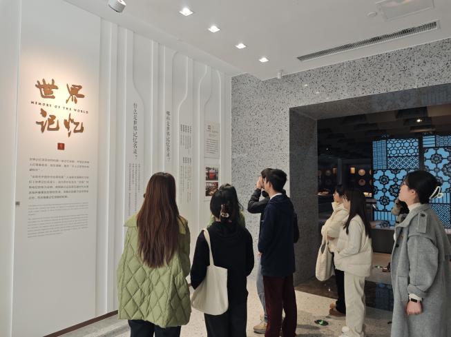 在参观学习的过程中,党员同志们在讲解员的带领下,了解了丝绸生产工艺过程、丝绸历史文化、丝绸艺术、丝绸织造智慧以及丝绸传承等背景,看到了224块意匠图的格子被放大铺满整面展墙,翻转展板丝绸样本档案跃然眼前;了解到了蜀锦、宋锦、云锦三大织锦的特点以及蜀绣、苏绣、湘绣、粤绣四大名绣的代表作和风格差异,还有56副花本拾取隋唐到近现代的精美丝绸纹样静静讲述着人间经纬的故事;最后在“守正出新”展区大家也感受到了中丝馆对于中国丝绸的传承做出的努力与对未来的美好期待。现苏州丝绸技艺及文化遗产已获国际认可,缂丝、云锦等传统手工艺也已入选世界记忆名录,彰显了其独特价值。中国丝绸的国际声誉正在响彻世界,中国在非物质文化遗产保护工作方面也不断获得了显著成就。