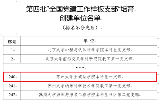 近日,教育部公布了关于第四批新时代高校党建示范创建和质量创优工作的遴选结果,我院本科生一支部成功入选“全国党建工作样板支部”培育创建单位,标志着我院在国家级党建“双创”工作中取得历史突破。