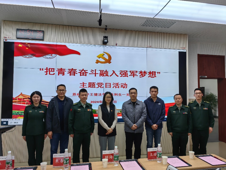 “青年兴则国兴,青年强则国强。”为了更好地激发青年人的爱国热情和民族责任感,鼓励他们为国家的安全和发展贡献自己的力量,王健法学院本科一支部于3月22日下午开展了“把青春融入强军梦想”的主题党日活动。