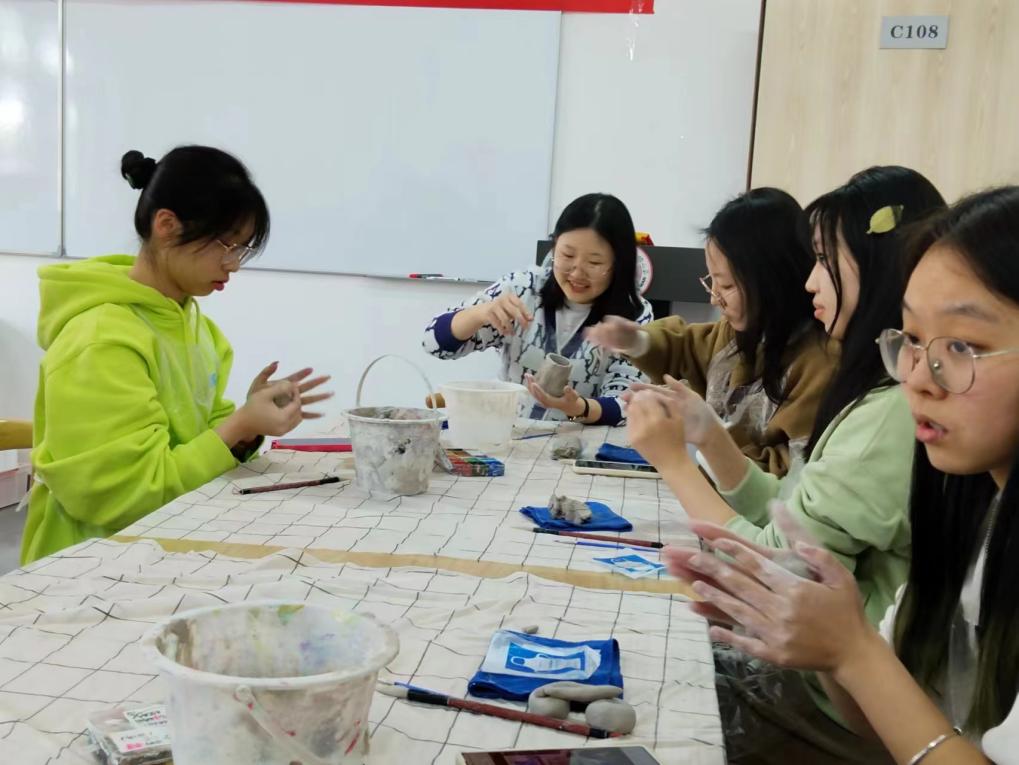 邬孟悦:“之前从未接触过陶艺,今天的尝试让我感受到把陶泥塑成自己想要的样子的乐趣,为我的校园生活填色。”