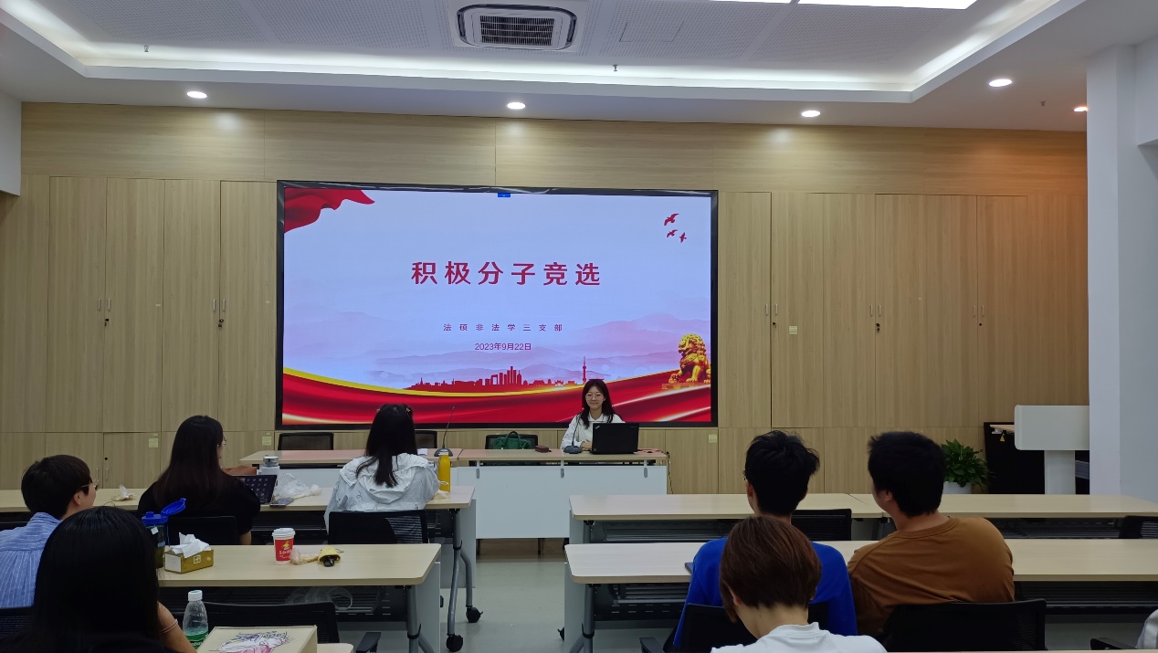 为了激励广大党员同志积极进取、刻苦专研,拿下人生的第一大关——法考。2023年9月22日,法硕非法学三支部于王健法学院A105召开支部大会,分享法考通关经验。本次活动由法硕非法学第三支部书记李芊芊同志主持,支部22名党员共同参与。