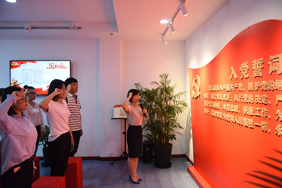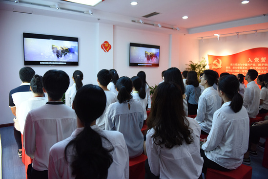 最后,周国华书记作党旗下讲话。他表示,党旗宣誓是入党的重要环节,是政治生涯中的大事,预备党员们要履行誓言,从组织,思想,行动上成为一名真正党员。同时,周国华书记要求所有党员认真学习党的十九大精神,铭记英烈事迹,不忘初心跟党走。要坚定信仰,坚定同心同向的伟大理想,树立正确航向,勇于担当,扛起时代的历史使命,将共产主义铭记于心,加强党性修养,做一名无愧于时代,无愧于人民的优秀党员,