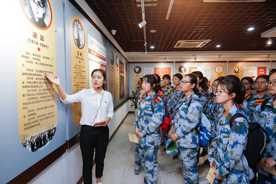 随后王健法学院2018级40名新生代表也井然有序地走进博物馆,参观英烈展,聆听英雄事迹。