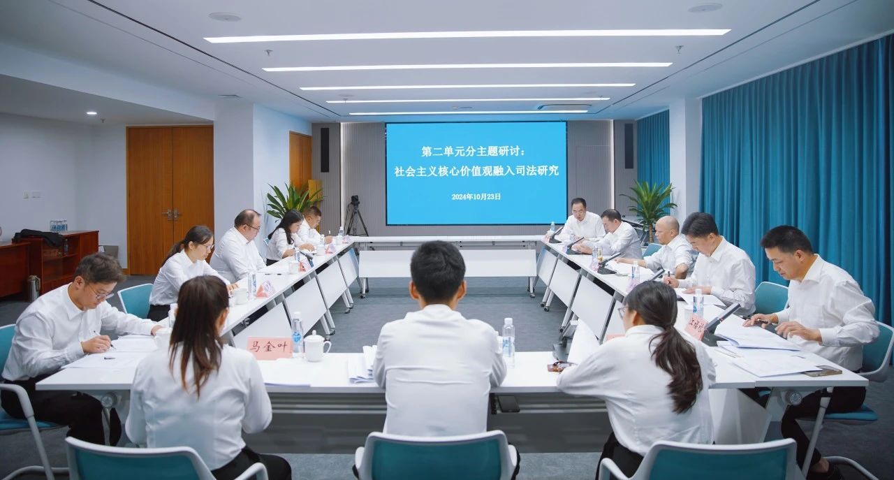 推进会还设置了应用法学专题研讨会环节,共分“涉案财物处置问题研究”“社会主义核心价值观融入司法研究”“执破融合改革中相关问题研究”“民事纠纷若干疑难问题研究”“资产支持证券制度问题研究、区块链证据相关问题研究”“新《公司法》修订重点内容研究”六个主题单元。来自园区法院的法官代表和我院法学专家齐聚一堂,以法官介绍案情和实践困境为起点,围绕争议焦点和法律适用问题畅所欲言。
