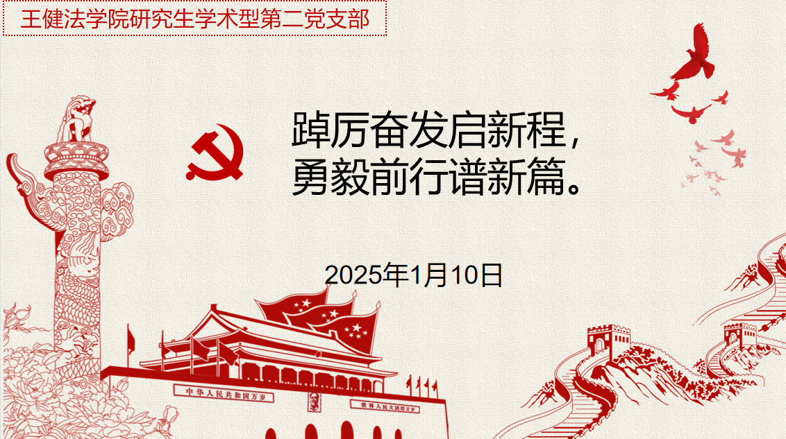 2025年1月10日,我院研究生学硕第二党支部开展以“踔厉奋发启新程 勇毅前行谱新篇”为主题的党日活动,党支部组织全体党员集体学习习近平总书记二〇二五年新年贺词精神,感受祖国踏浪前行的奋进力量,凝聚起冲锋决胜的发展信心,并组织党员深入学习2024年中央经济工作会议精神,引导党员全面看待我国经济社会发展取得的进展成效,准确把握我国经济发展面临的形势和趋势,深刻领会新时代做好经济工作的规律性认识,有力有效推动党中央决策部署落实落地。