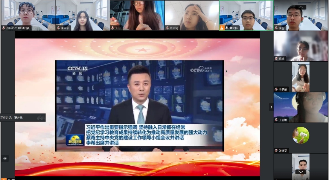 为深入学习贯彻习近平总书记关于全面加强党的纪律建设的重要论述,特别是关于党纪学习教育的重要指示精神,坚决贯彻落实党中央决策部署以及教育部党组部署要求,推动党纪学习教育走深走实,2024年9月21日,受台风天气影响,支部全体党员在线上召开以“以学明纪,以纪正行”为主题的党纪学习教育总结会议,本次会议由党支部委员夏冬林主持,全体党员同志参加会议。