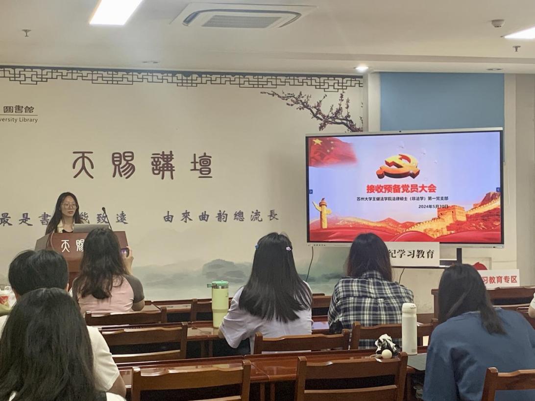 2024年5月30日,王健法学院法律(非法学)一支部召开党员大会,讨论并表决接收郭泽昕同志为预备党员相关事宜。