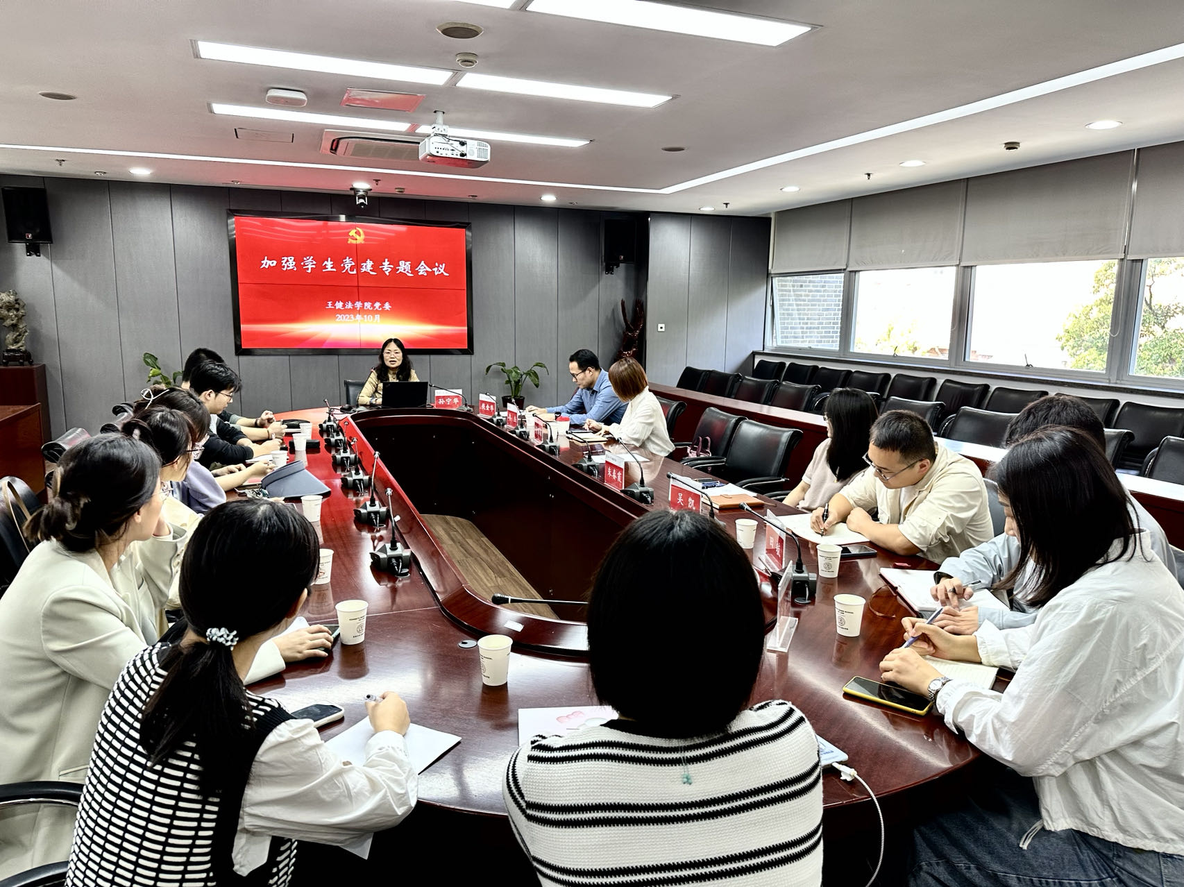 为深入学习贯彻习近平新时代中国特色社会主义思想和党的二十大精神,贯彻落实“时代新人铸魂工程”,全面提升学生党建质量,切实发挥党支部战斗堡垒作用,以高质量党建工作引领学院育人育才,10月16日下午,王健法学院党委召开加强学生党建专题会议。学院党委书记孙宁华,副书记、副院长朱春霞,知识产权研究院执行院长肖丽娟,专职组织员钱金华,学生工作办公室主任单杰,辅导员吴凯、田毓、刘桂宏以及各支部书记参加会议。