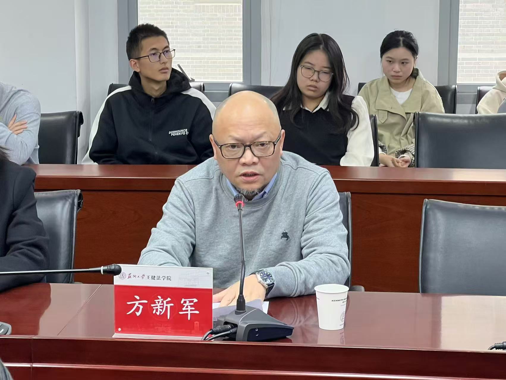 王健法学院党委书记、院长方新军对宣讲嘉宾表示热烈的欢迎和感谢。他表示,苏州大学自1982年恢复法学教育以来,深耕法学、服务江苏,已为全省法院系统培育了大量法学人才。在加入名校优选高校名单的这几年,苏州大学学子积极参与,每年越来越多的优秀毕业生通过名校优选进入江苏省法院系统工作。在2024年的名校优选中,苏州大学共有7位同学进入江苏省法检系统工作,这样的成绩离不开省委组织部和省高院的大力支持,也是对学院人才培养质量、学科建设水平的充分肯定。他希望同学们能够把握机会,在名校优生选调中脱颖而出。