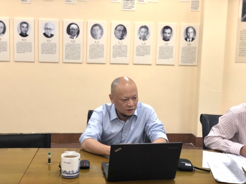 在“党性修养、廉洁自律”的专题学习中, 朱春霞副院长、王振华副书记领学了《习近平关于“不忘初心、牢记使命”重要论述选编》中与党性修养、廉洁自律相关的内容。方新军院长就社会主义核心价值观融入法治,结合工作实际作重点发言。