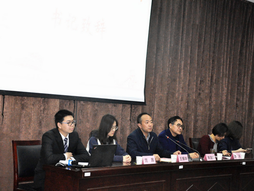 3月27日下午,苏州大学王健法学院分党校第61期党的基本知识培训班、第40期预备党员培训班开学典礼暨第一次党课在王健法学院中式模拟法庭隆重举行。学院党委书记、分党校校长周国华老师,学院党委副书记、分党校副校长王振华老师,学院学生工作办公室主任、分党校秘书长胡洋老师,学院党委组织员范茜老师,学院团委书记曹妍老师出席本次开学典礼。开学典礼由分党校学生党务工作中心胡韬相同学主持。