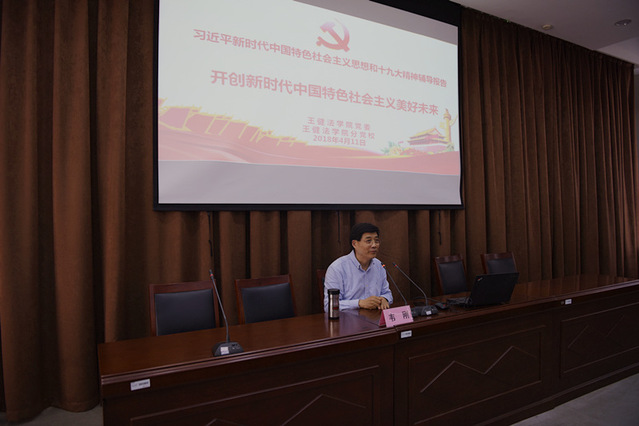 本场报告是王健法学院2018年度学习“习近平新时代中国特色社会主义思想和十九大精神”的开锣报告,拉开了学院年度党内政治学习的序幕,接下来学院党委还将通过现场教学、领导干部上党课、集体研讨交流、影视观摩等多种形式开展深入学习。