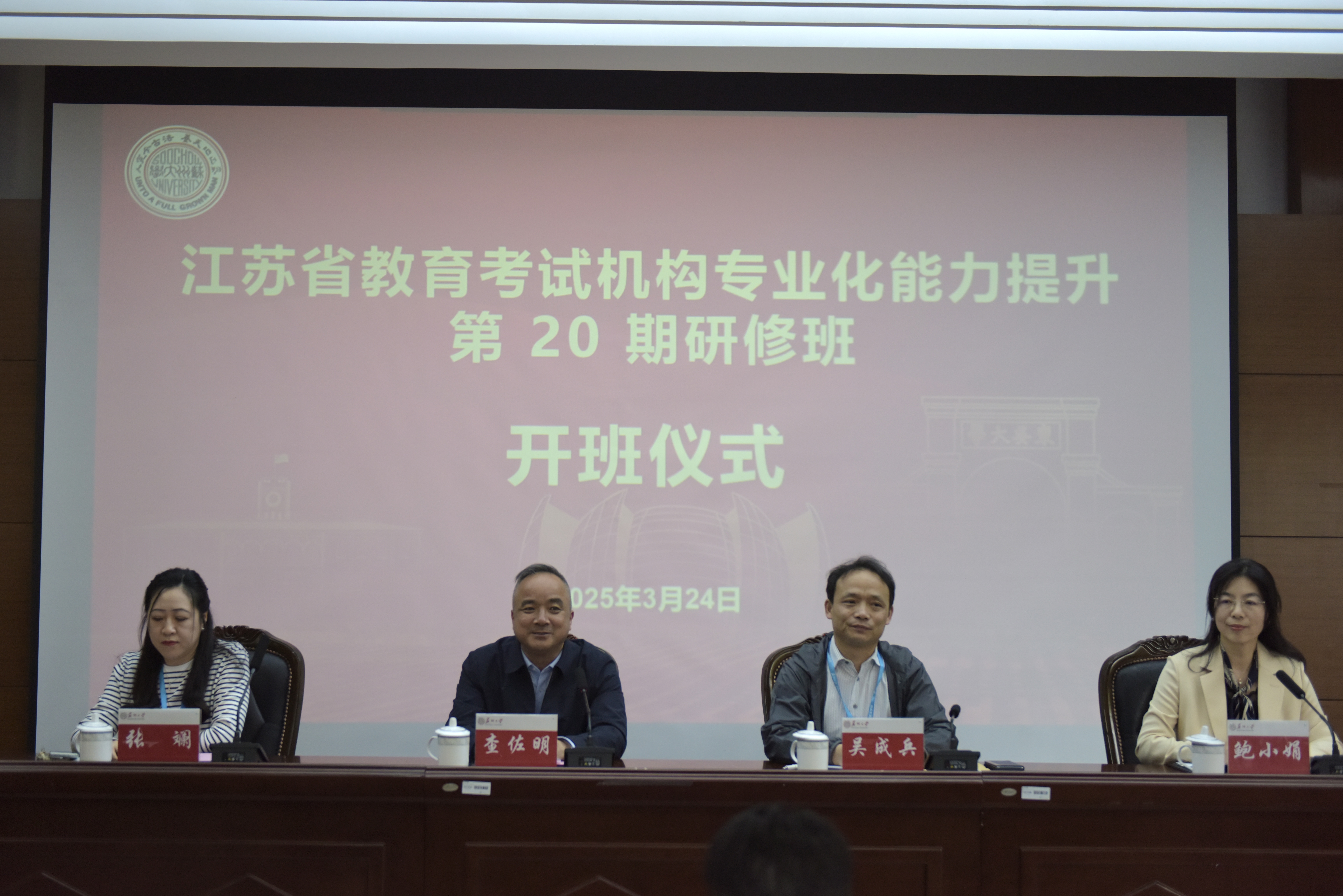 2025年3月24日,江苏省教育考试机构专业化能力提升第20期研修班开班仪式在苏州大学天赐庄校区举行。来自省教育考试院各处室、全省各地市考试机构、高校招生条线的70名学员参加培训。我校党委常委、副校长查佐明开班致辞,江苏省教育考试院党委委员、副院长吴成兵参加开班仪式并作开班动员讲话。