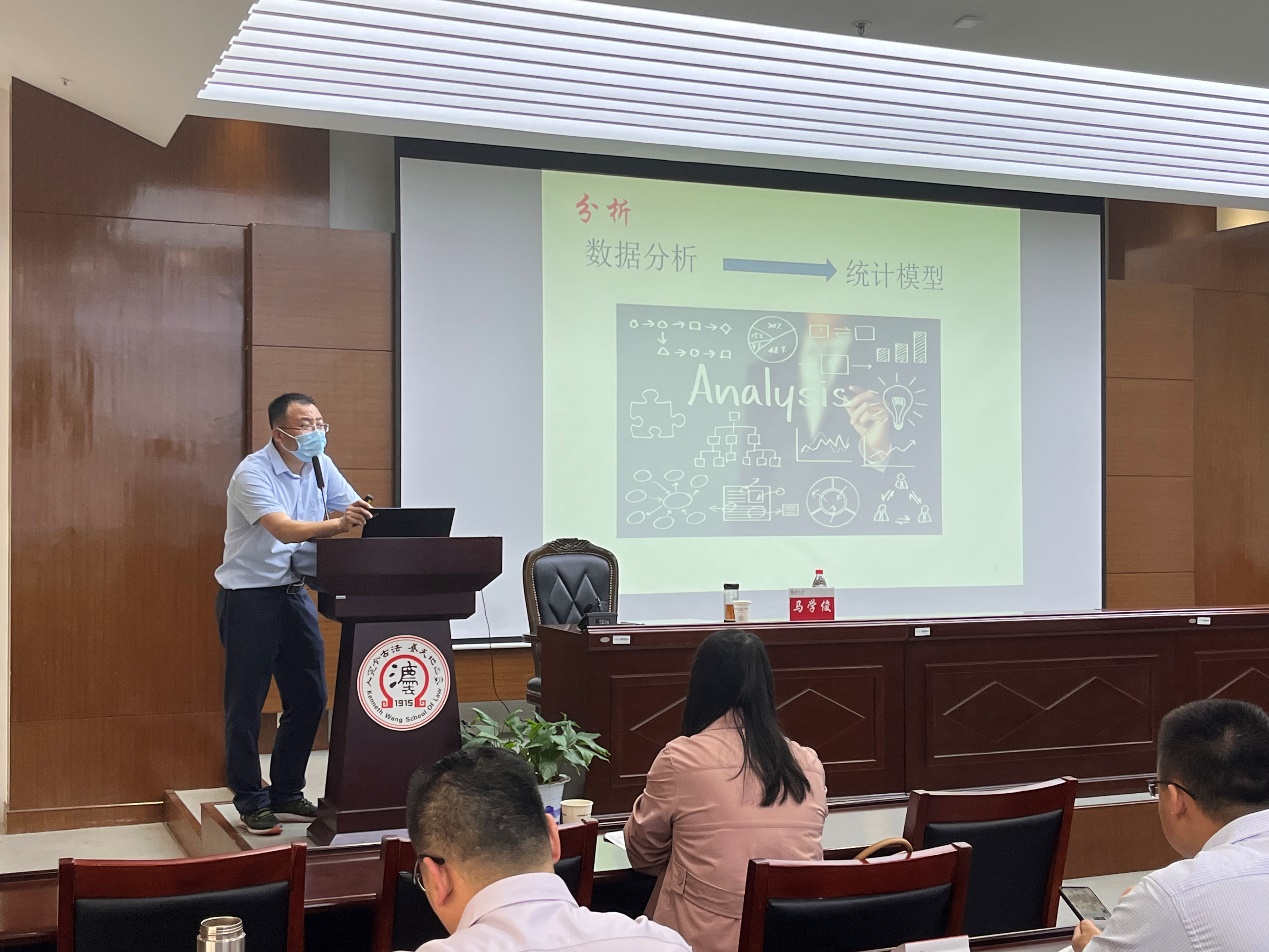 苏州大学王健法学院党委书记孙宁华致辞,孙宁华书记对各位学员的到来表示热烈的欢迎,并向学员们简单介绍了苏州大学悠久的历史及法学院的学科建设和师资设置。随后,佛山市禅城区统计局局长李红烈发言并做了动员大会。本期培训班为期5天,学院根据本班次学员的工作特性,为他们量身定制了培训课程。有着孙宁华书记的“人民就是江山 江山就是人民——党的二十大精神解读” 的课程:也有唐煜教授的“大数据时代下的统计新思维”的课程;陈建国处长“学习《统计法》等法律法规,研究新形势下如何做好统计工作”的课程;以及马学俊教授带来的“统计中的数据分析”,课程取得了很好的教学效果。