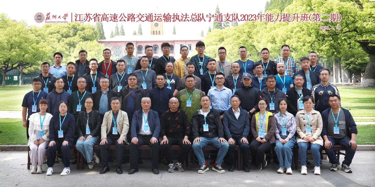 2023年4月26日至4月28日,苏州大学王健法学院顺利举办了“江苏省高速公路交通运输执法总队宁通支队2023年能力提升班(第二期)”。来自江苏省高速公路交通运输执法总队宁通支队的54名学员参加了本次培训。