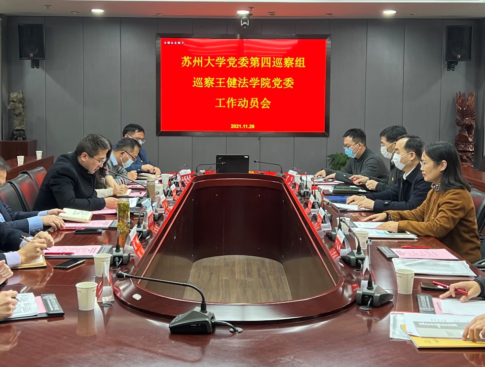 根据学校党委统一部署,校党委第六轮巡察第四巡察组于11月26日至12月9日对王健法学院党委开展巡察工作。11月26日下午,校党委第四巡察组在王健法学院二楼大会议室召开巡察王健法学院党委工作动员会。第四巡察组全体成员、王健法学院全体教职工参加会议。动员大会由王健法学院党委书记吴江主持。