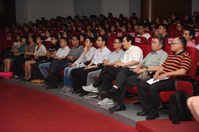 庄严的国歌之后,陆书记回顾了2015年的法学院百年诞辰,并播放了凝视过去、展望未来的短片——《百年鸿影》。在这部短片中,新生们瞻仰了东吴先贤,也在法学界大家的鼓励中燃起了斗志。