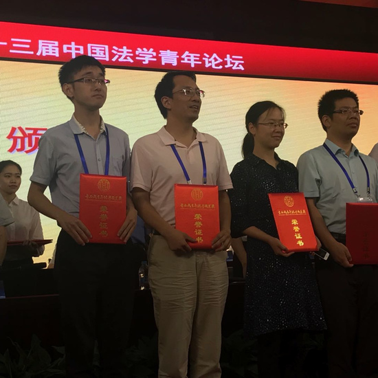 2018年7月8日,在华东政法大学举行了第十三届“中国法学青年论坛”,我院院长胡玉鸿教授与王俊老师应邀参会。其中胡玉鸿教授主持了第一分论坛的研讨会,而王俊老师则作为第六届“董必武青年法学成果奖”的获奖代表参加了颁奖典礼。