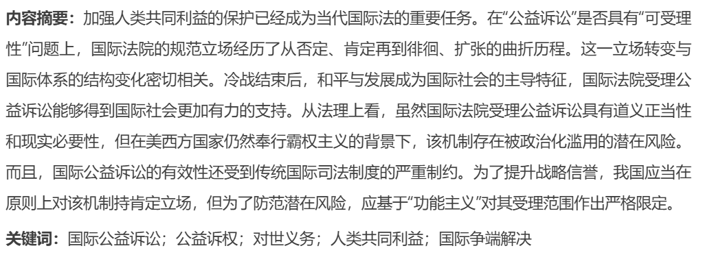 国际法院受理“公益诉讼”的规范演进与中国立场