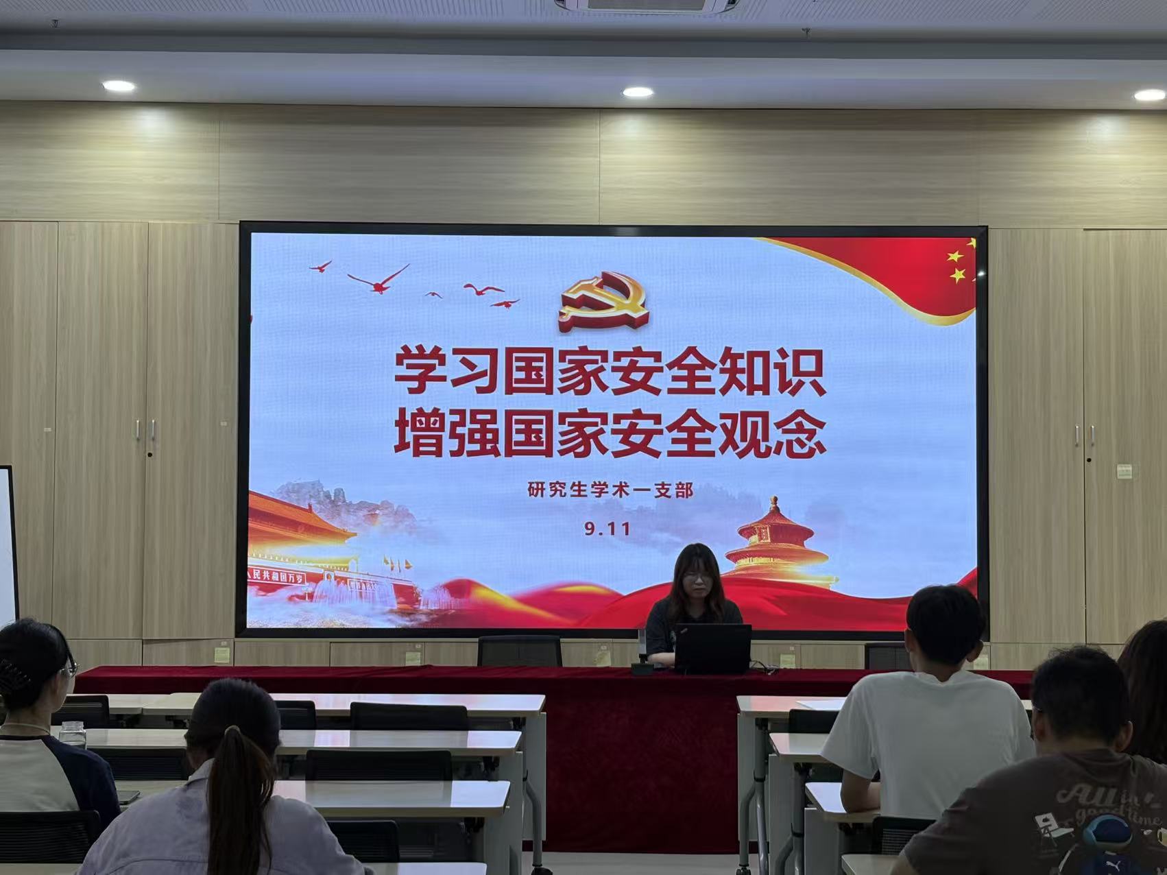 为全面贯彻总体国家安全观,切实提升全体党员国家安全意识,学术型研究生一支部于9月11日组织开展了以“国家安全教育:学习国家安全知识 增强国家安全观念”为主题的党日活动。活动通过观看“九三阅兵”视频、分享交流观后感等形式,为全体党员开展了生动而深刻的爱国主义和国家安全教育课。