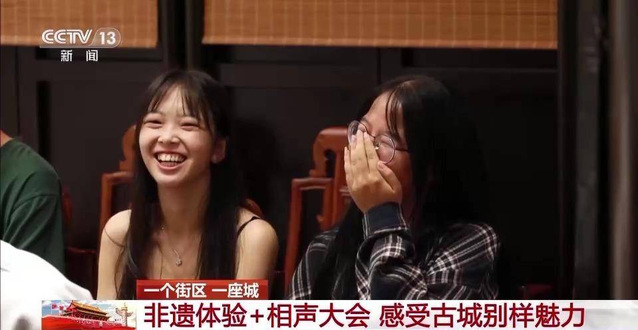 古街文化淳朴香,相声快板响四方。傍晚,学员们跟随央视栏目组在苏州市平江文化中心感受相声文化的魅力,一袭大褂立于台上,欢声笑语聚于台下。作为非遗珍馐之一的相声文化自清末流传至今,在嬉笑怒骂中,承载着中国人的喜怒哀乐。当晚的每一段演出不仅在说学逗唱之间演绎百态人生,还传递着社会主义新时代文明建设精神。《大保镖》中快递小哥的欢乐经历体现着社会主义市场经济中的职业精神、《风花与血月》中不同民族表达爱意的习俗体现着民族文化的多样性,也强调了尊重保护民族文化的必要性。演员将传统文化与现代精神文明建设巧妙结合,富含雅韵的同时给观众带来了欢乐。