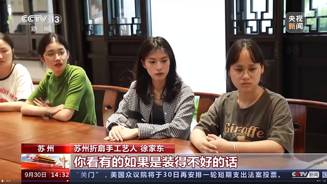 苏扇制作结束后,央视栏目组工作人员对分党校学员沈家妮、白淑云进行采访,了解学员在制作苏扇时的感受,以及对于苏州传统文化的感触。吕霖谈到,她在制作过程中发现,即使是苏扇制作的最后一道工序,完成起来也很有难度,这让她充分体会到了传统工艺的智慧,也对苏扇制作的前七十一道工序产生了兴趣,后续会去苏扇博物馆继续了解。吴亚红则提到,通过这次苏扇制作活动,她接触到了苏州的折扇文化,加深了对于江南的理解。