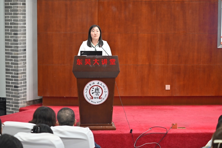 国际歌后,孙宁华书记进行致辞。时值学年伊始,她首先对法学院全体分党校学员的到来表示热烈欢迎。随后她对学员提出了期望,即在学习上谨记“时人不识凌云木,直待凌云始道高”,见贤思齐,择善而从,优秀者和优秀者相聚,才会碰撞出思想的绚丽火花,优秀者和优秀者对话,才能催生出精神的高光时刻;在科研中牢记“细水长流淘尽砂,耐心方可匠心华”,勇于攀登,迎难而上,以自己之所学,促社会之公平,保持甘坐冷板凳的定力,胸怀批判精神,从日常生活出发,探索未知的领域;在思想上切记“愿得此身长报国,何须生入玉门关”,坚定信念,对党忠诚,紧紧团结在中国共产党的领导下,为实现中华民族的伟大复兴不懈奋斗。最后,她以习近平总书记在苏州考察的讲话作结,强调新时代青年人应当肩负起中华民族伟大复兴的使命任务,把握历史机遇,大显身手,勇攀高峰。