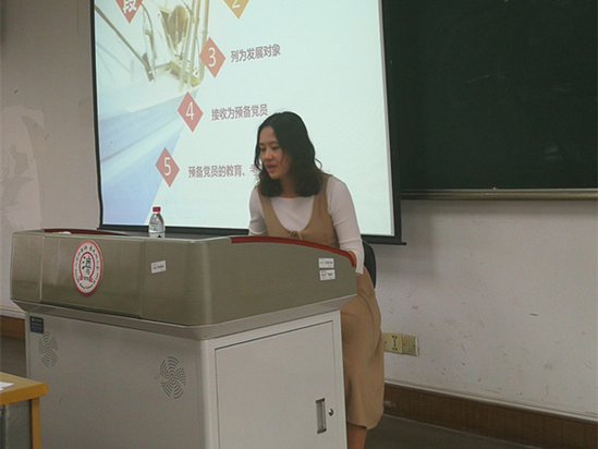 之后,范茜老师向学员详细介绍了入党的五个阶段——(1)申请入党(2)确定为积极分子(3)列为发展对象(4)接收为预备党员(5)预备党员的教育、考察和转正以及四十个具体步骤。
