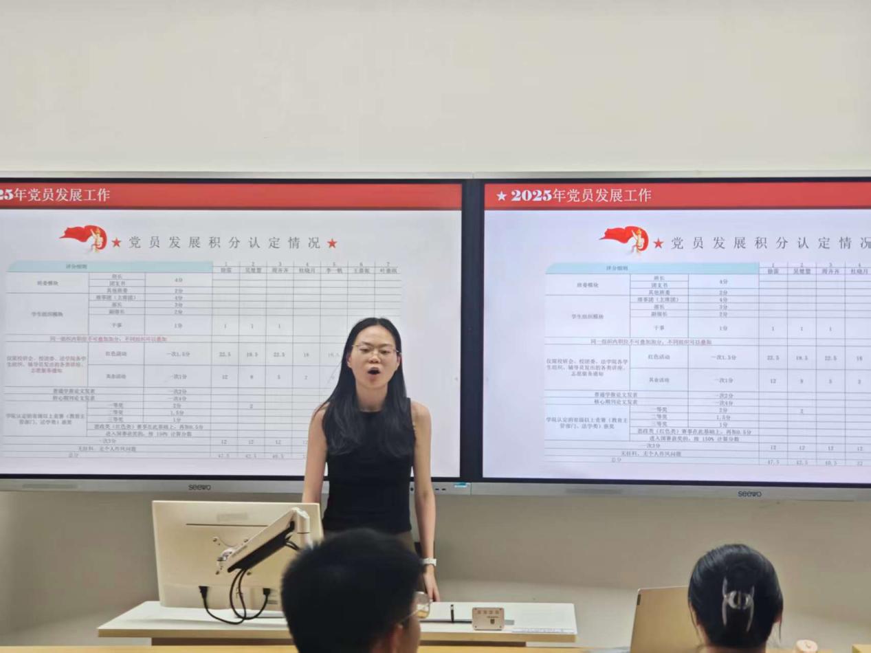 会议最后一项议程为讨论确定支部发展对象。经前期考察与支部委员初步审核,徐雷、吴楚慧2名同志作为候选发展对象提交大会审议。会上,支部委员逐一介绍2名同志的政治思想、工作学习、群众基础等情况,全体党员充分发表意见,最终以投票表决的方式,确定接收徐雷、吴楚慧为支部发展对象。