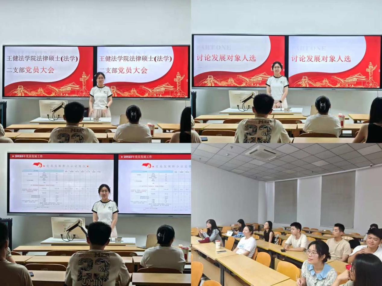 2025年9月7日,法律硕士(法学)二支部以线上线下相结合的方式,召开9月党员大会暨主题党日活动。支部全体党员参会,会议由党支部书记汪力主持,组织委员孙在学、宣传委员雷屹楠、纪检委员陈科协同推进各项议程。
