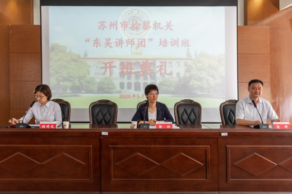 5月25日上午,由苏州市人民检察院举办,苏州大学承办的苏州市检察机关“东吴讲师团”培训班在王健法学院顺利开班。苏州市人民检察院党组成员、政治部主任徐玲,宣教处处长李跃,苏州大学王健法学院副院长沈晔以及来自苏州市检察系统的41名干警参加开班典礼。
