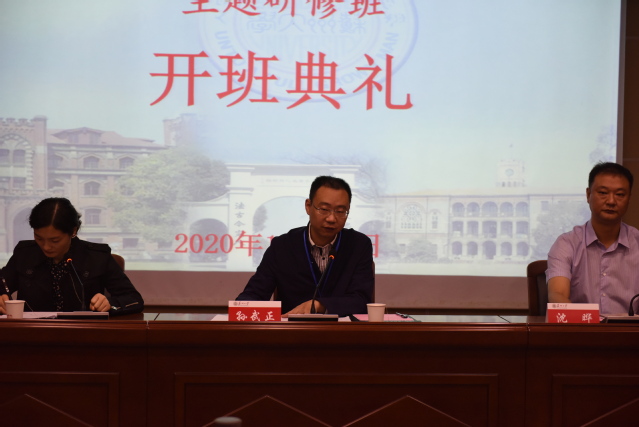 10月11日上午,本期研修班的开班典礼在苏州大学天元讲堂举行。典礼由苏州大学法学院武晓莉老师主持,她向学员们介绍了到会的领导,并请苏州大学法学院副院长沈晔老师致辞。沈院长首先对各位学员的到来表示热烈的欢迎,接着向大家介绍了苏州大学悠久的历史及法学院的学科建设和师资设置。随后,丰县司法局局长孙武正为本次研修班作开班讲话。