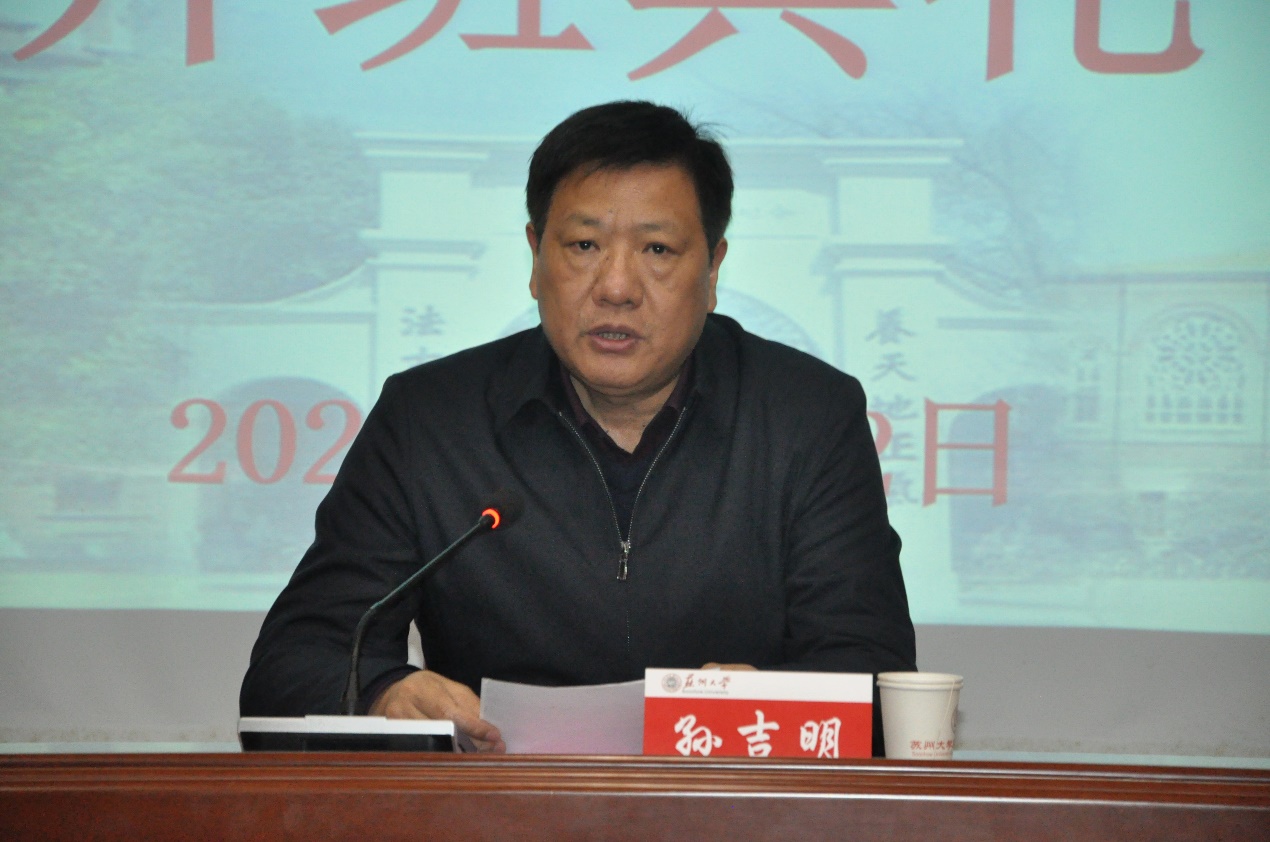 首先,苏州大学王健法学院副院长沈晔介绍了苏州大学悠久的历史。然后,孙吉明部长发表重要讲话。他指出,举办此次法治建设专题培训班,既是落实“3456”泉山方案、实施干部能力提升工程的具体实践,也是深化比学赶帮超活动的有力抓手,以思想上的破冰,带动行动上的突围,为泉山高质量发展提供法治保障。希望此次参训的同志珍惜难得机会,学以增智,学以提能,学以致用。