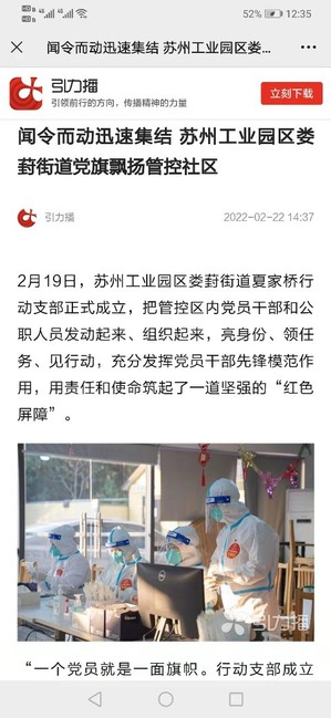 2月18日,苏州市委组织部、市委市级机关工委联合发出关于进一步动员各级党组织和广大党员积极行动起来共同打赢疫情防控战的通知,要求封控区管控区党员干部主动亮明身份,成立行动支部,把区域内的党员干部、国家公职人员和团员青年组织起来,积极开展志愿服务、疏导群众情绪,尽最大努力服务保障好封控区管控区群众生活,形成群防群控强大合力。我院上官院长被任命为夏家桥行动支部书记。